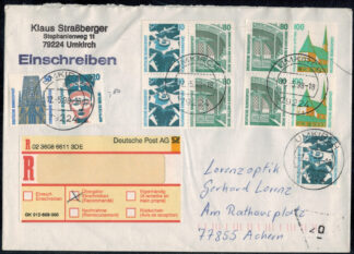 Bund W 99 + 100 + W 93 + 94 als MiF auf portogerchtem Einschreibenbrief