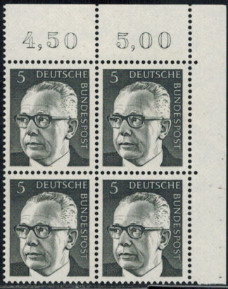 Bund 635 Eckrand 4-er Block links oben postfrisch