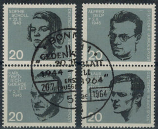 Bund 0431 – 435 + 434 – 438 zwei senkrechte 2-er Streifen aus Block 3 mit Ersttagsstempel 20.7.1964
