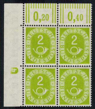 Bund 123 ER 4-er Block l.o. DZ 4 L2c gestempelt „Nürnberg 27.3.53“ selten !