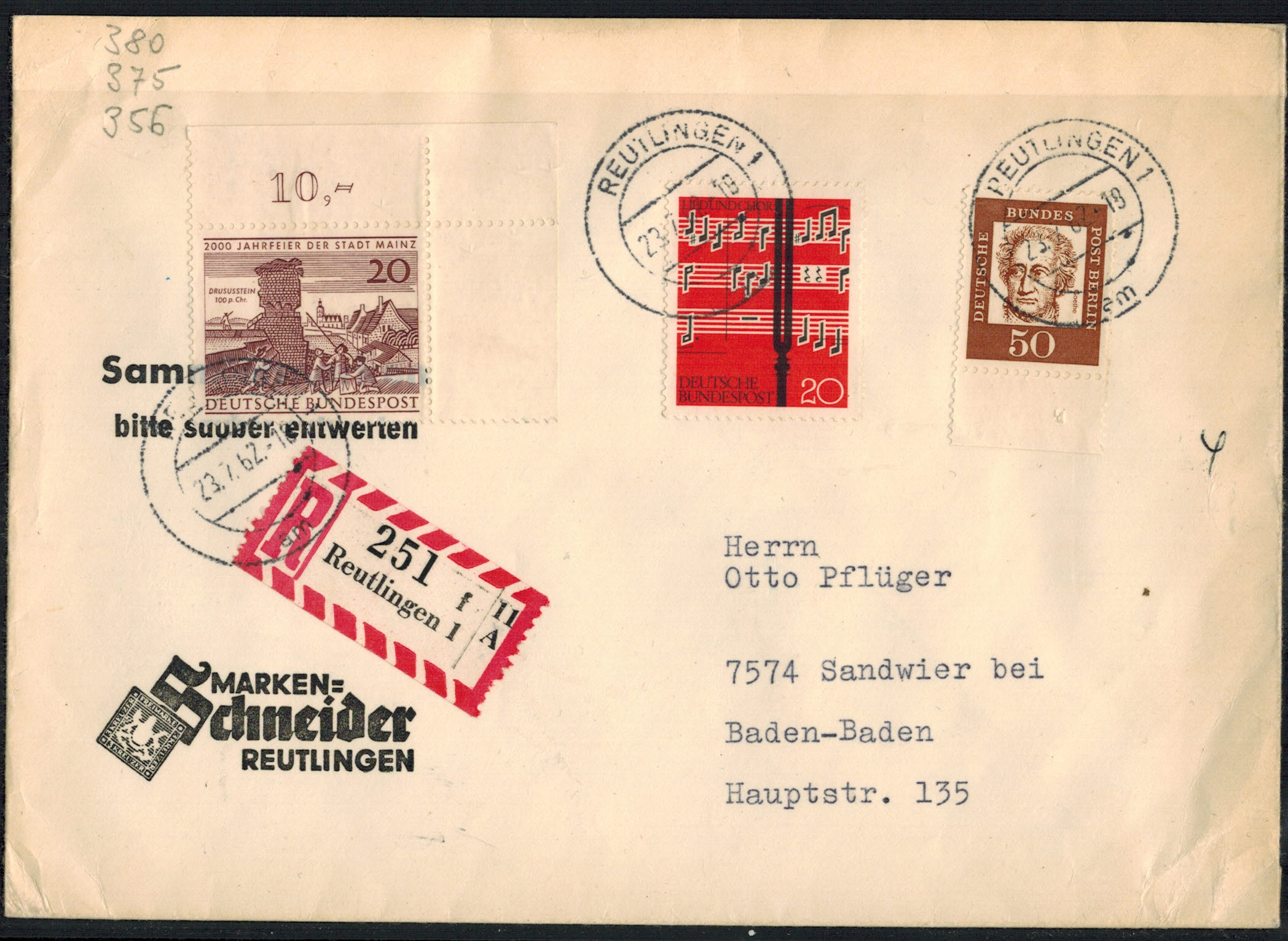 Berlin 0208 UR-Marke als MiF auf portogerechtem Einschreibenbrief !