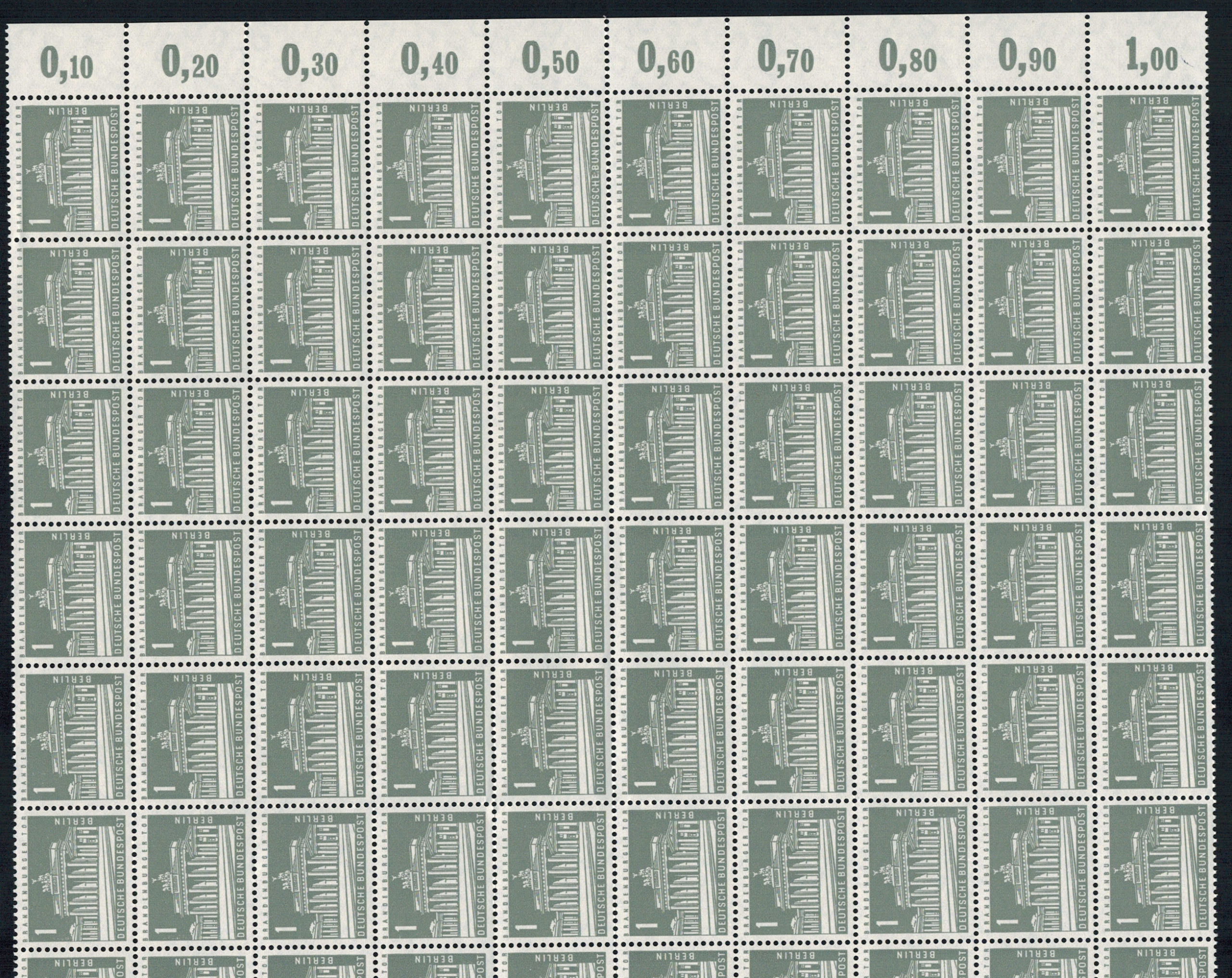 Berlin 0140 im 100-er Bogen mit HAN 115303 2, rechter und linker Seitenrand fehlen.