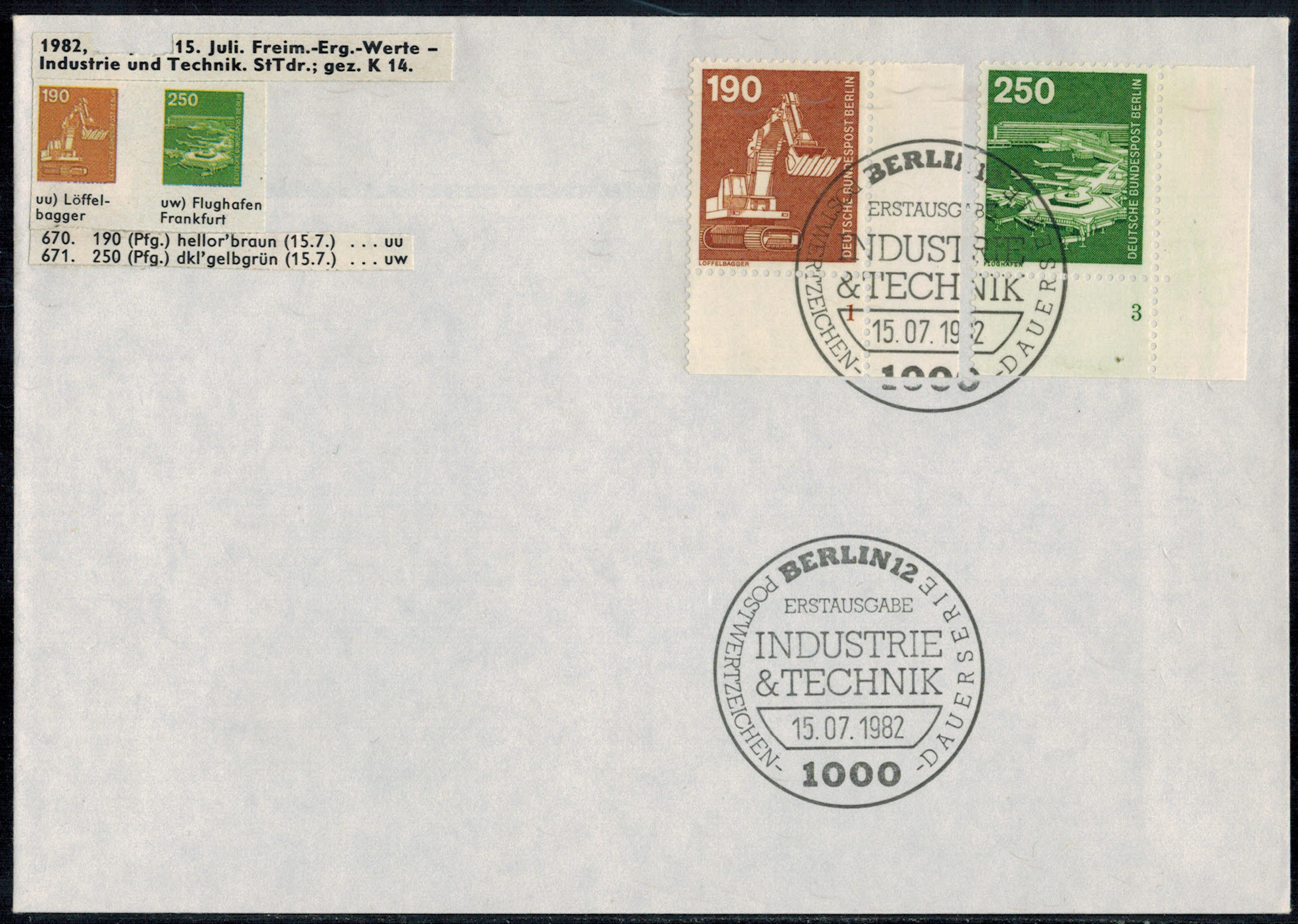 Berlin 0670 + 671 Eckrand rechts unten mit Formnummern auf Brief mit ESST Berlin“ !!