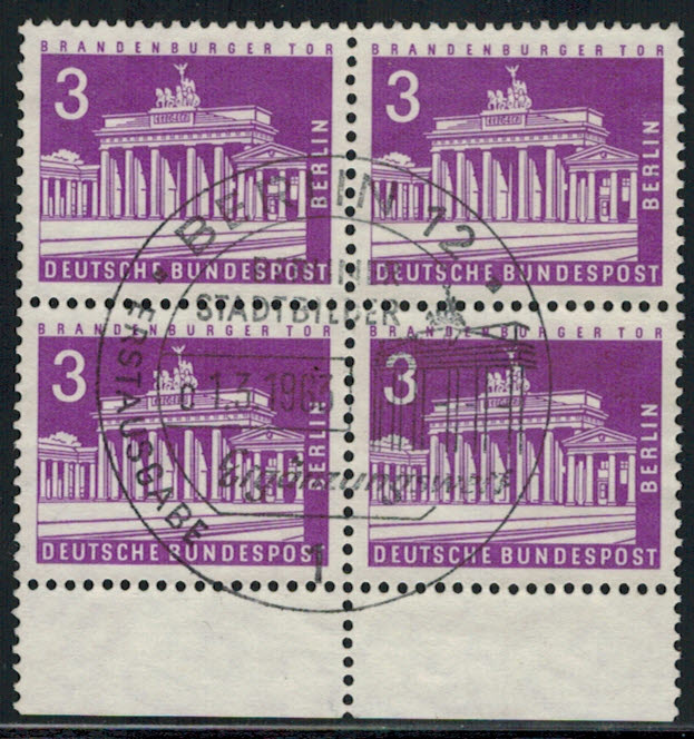 Berlin 231 4-er-ER-Block l.u. mit Bahnpoststempel "Hamburg-Westerland"