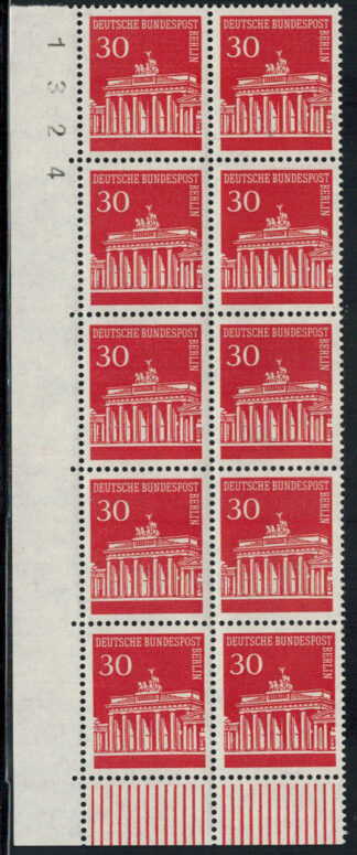 Berlin 286-290 kompl. 10-er Block 30+100 Pf mit BZN