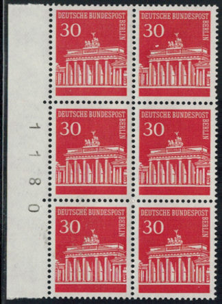 Berlin 288 Seitenrand-6-er-Block links mit 4-stelliger BZN nach aussen