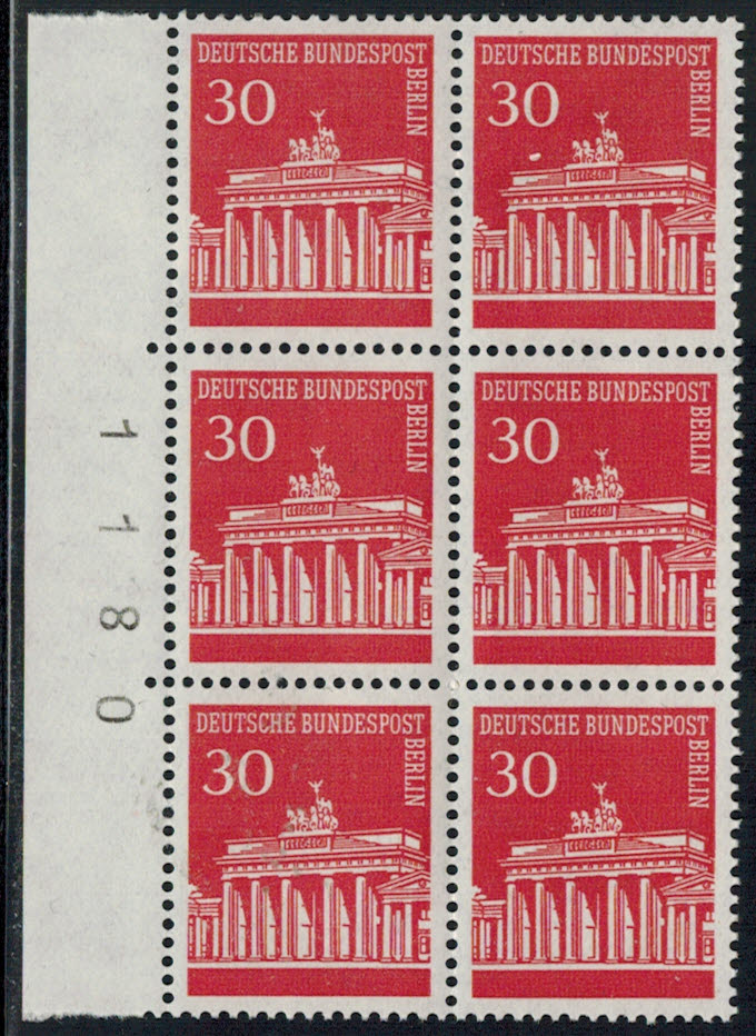Berlin 288 Seitenrand-4-er-Block links mit 6-stelliger BZN nach aussen