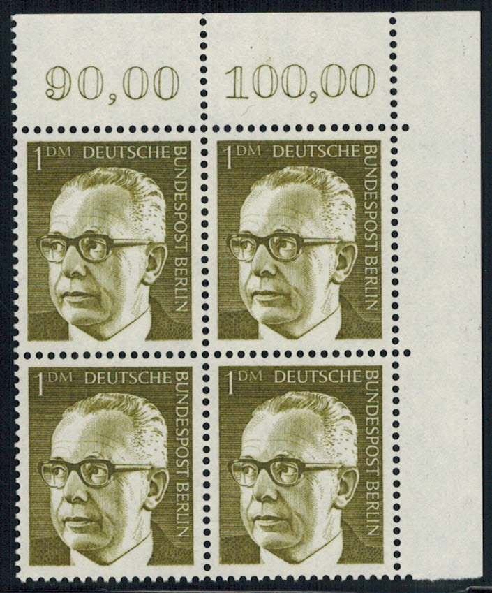 Berlin 369 ER-4-er Block rechts oben postfrisch, unbeschriftet ! Menge