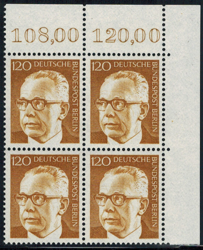 Berlin 395 ER-4-er Block rechts oben postfrisch, unbeschriftet ! Menge
