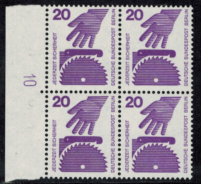 Berlin 407 ER-4-er Block links oben mit DZ 10 postfrisch in der 3.Reihe