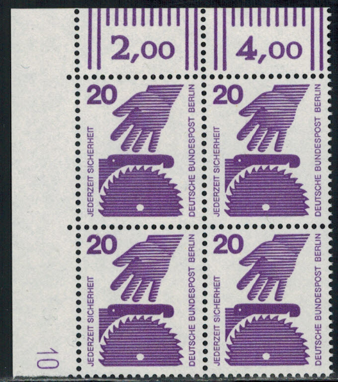 Berlin 404 ER-4-er Block links oben mit DZ 10 postfrisch in der 3.Reihe