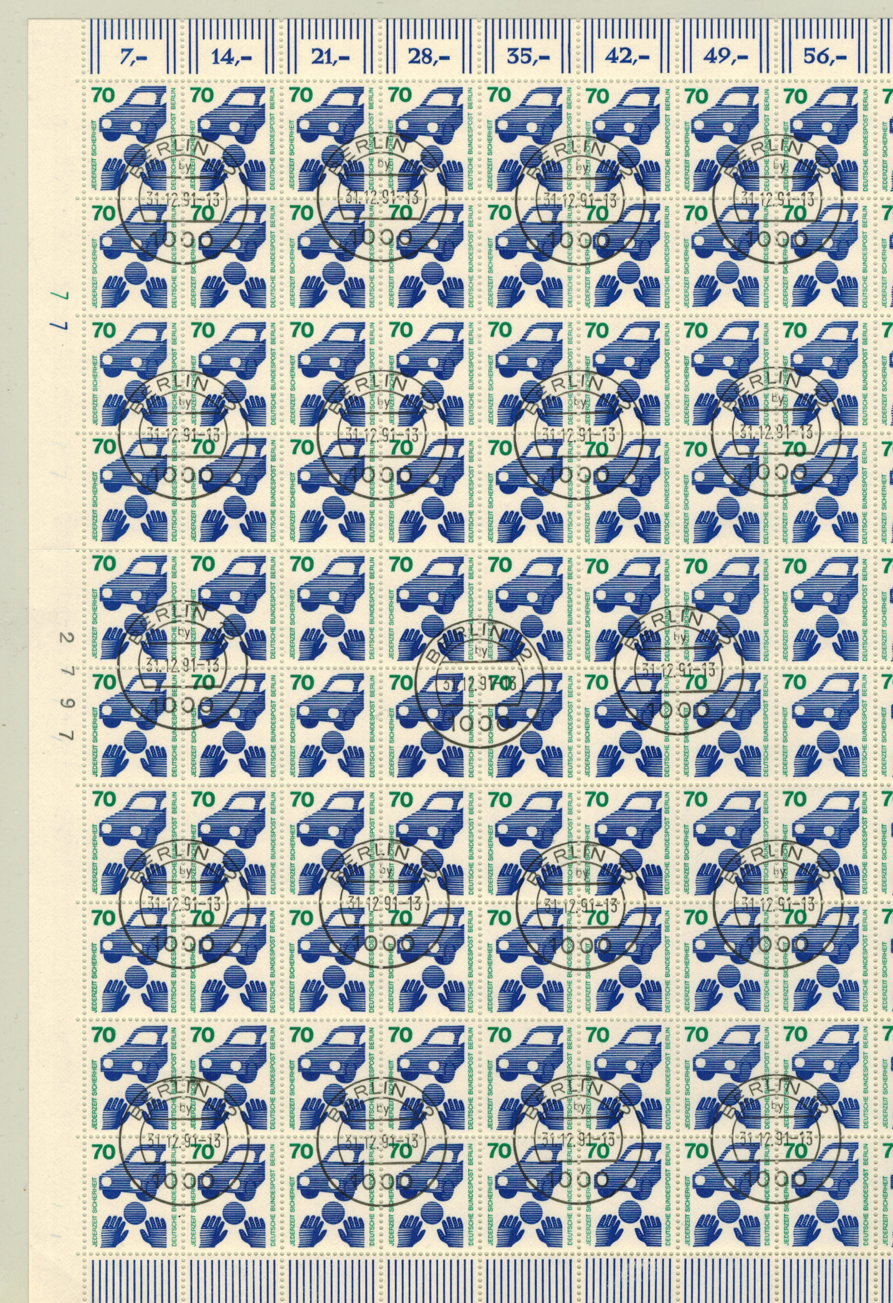 Berlin 453 im 100-er Bogen mit DZ 7/7 am 31.12 91 in Berlin Letzttags-gestempelt !!! Michel ca. 850.-€ ! Bogen geeignet zum aufteilen.