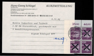 Berlin 586 ER-4-er Block l.o. EST Stempel Frankfurt mit Annulierungskreuzen !! Kurzmitteilung Schlegel !