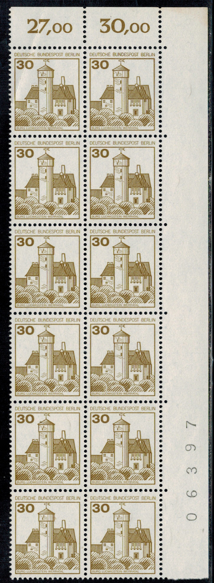 Berlin 534 12-er Block Eckrand rechts oben mit BZN n.a., links oben leichter Knick