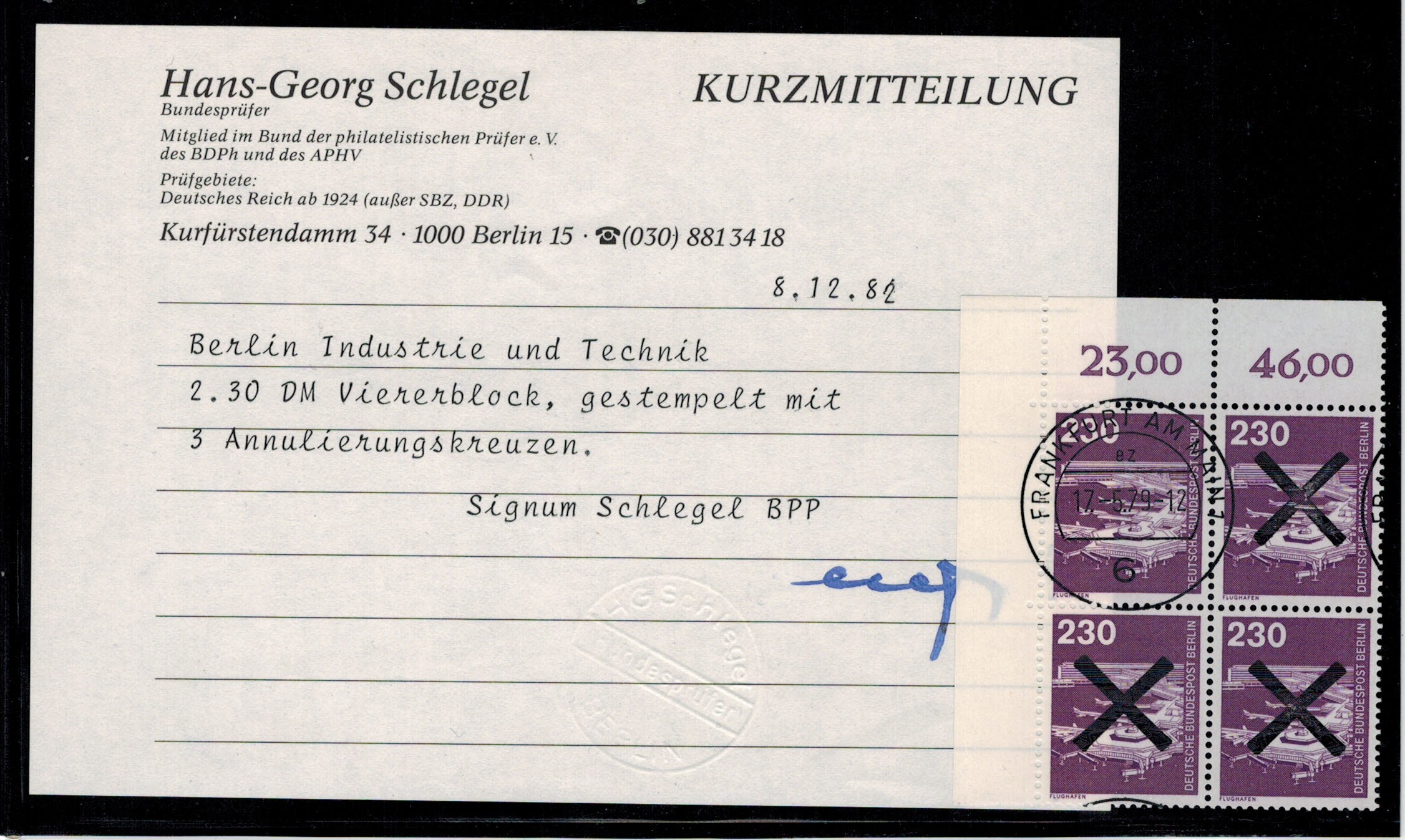 Berlin 586 er-4-er Block l.o. EST Stempel Frankfurt mit Annulierungskreuzen !!