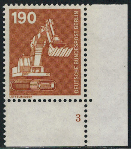 Berlin 670 ER rechts unten mit FN 3 postfrisch