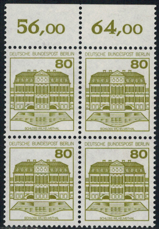 Berlin 535 ER links oben mit Plattenzeichen „Rechteck“ postfrisch