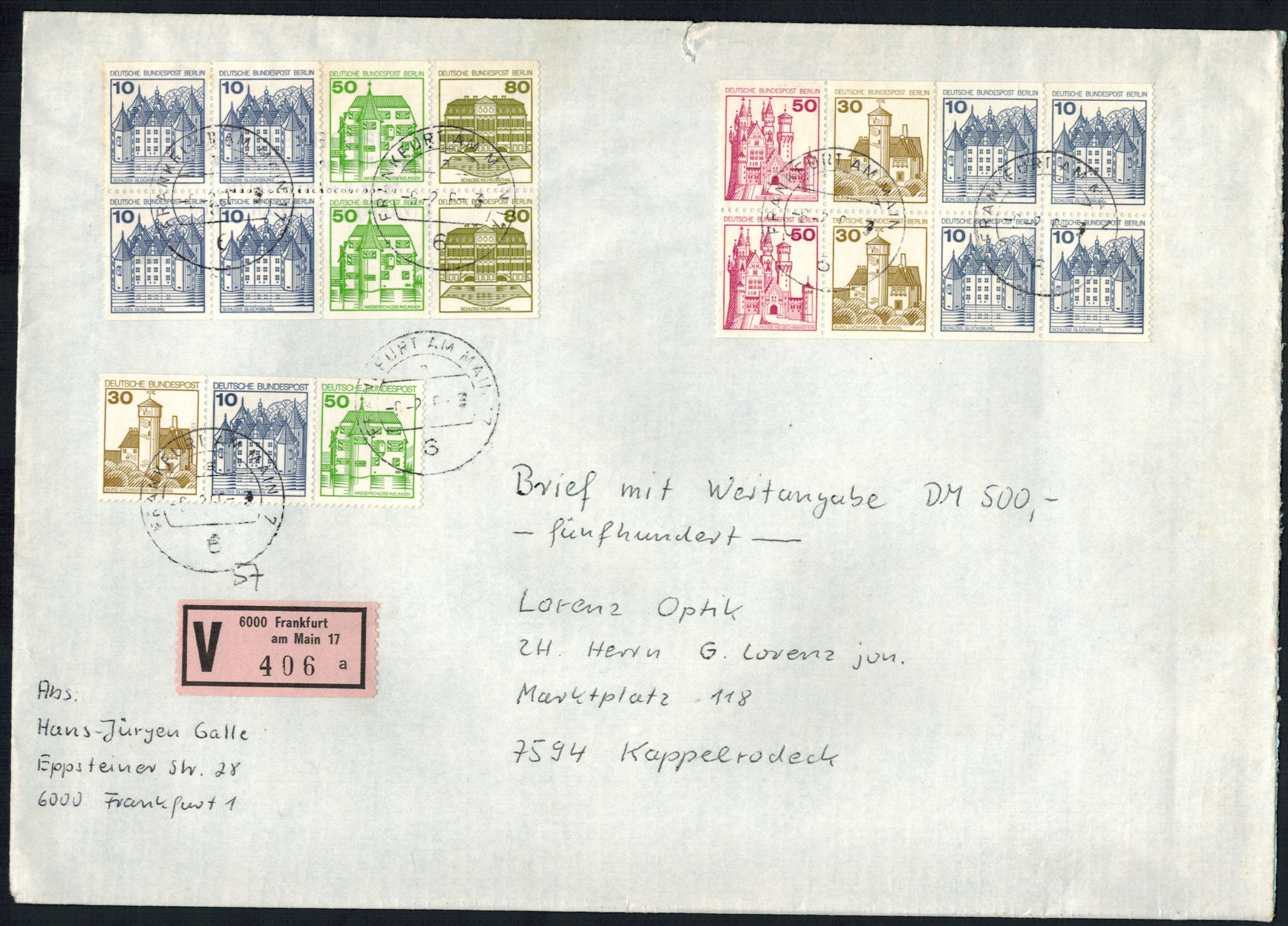 Berlin 0287 4-er Block Seitenrand l. mit DZ 12 + EZM 286 + 287 auf „Einschreiben“ ESST Brief !!