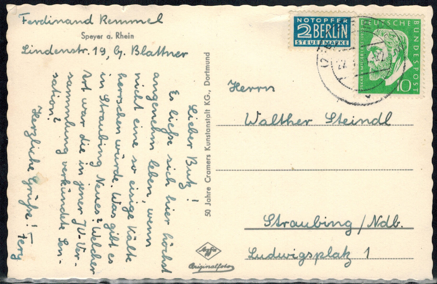 Bund 0209 als EF auf Postkarte von „Speyer“