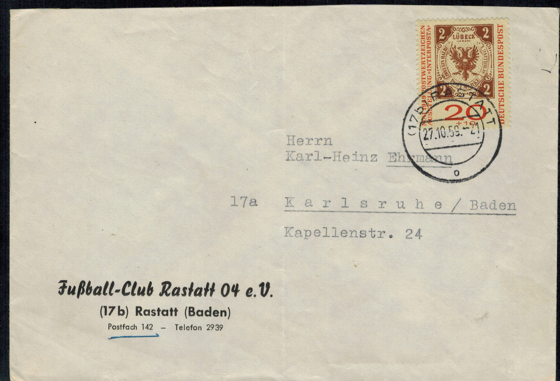 Bund 0376 - 379 mit Zusatzfrankatur 382 + 367 auf schönem Eilbotenbrief !