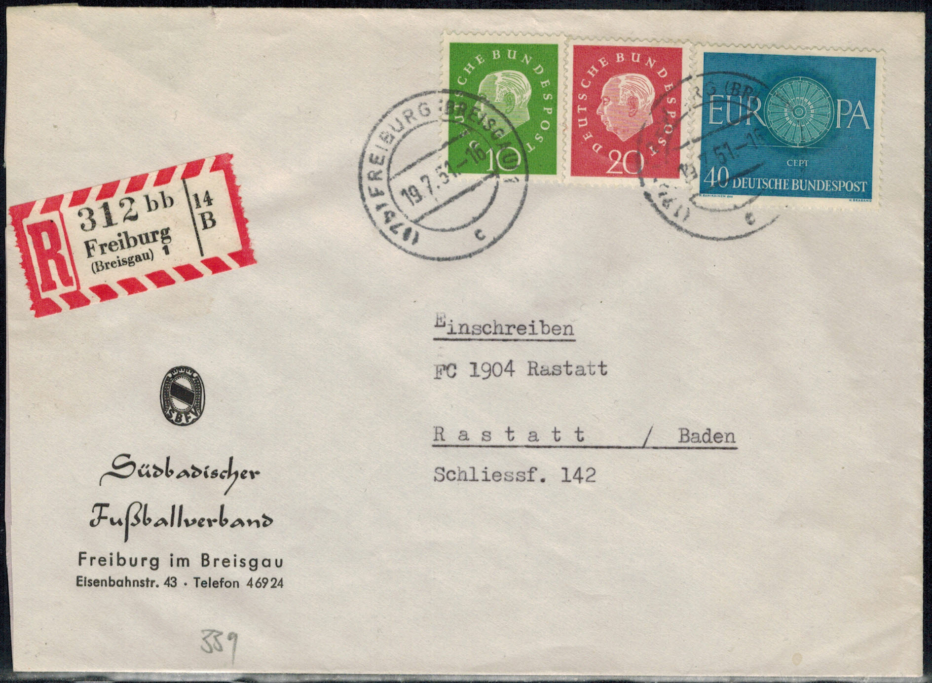 Bund 0339 als MiF auf portogerechtem Einschreibenbrief !