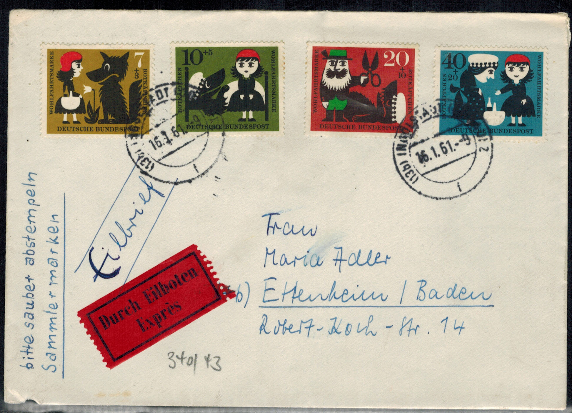 Bund 0340 – 343 als Satzbrief auf Eilzustellungsbrief !