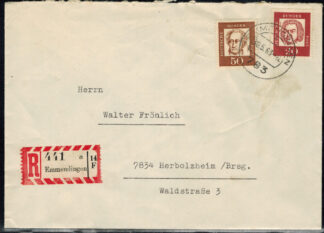 Bund 0416 + 418 + 420 als MiF auf portogerechtem Einschreibebrief !