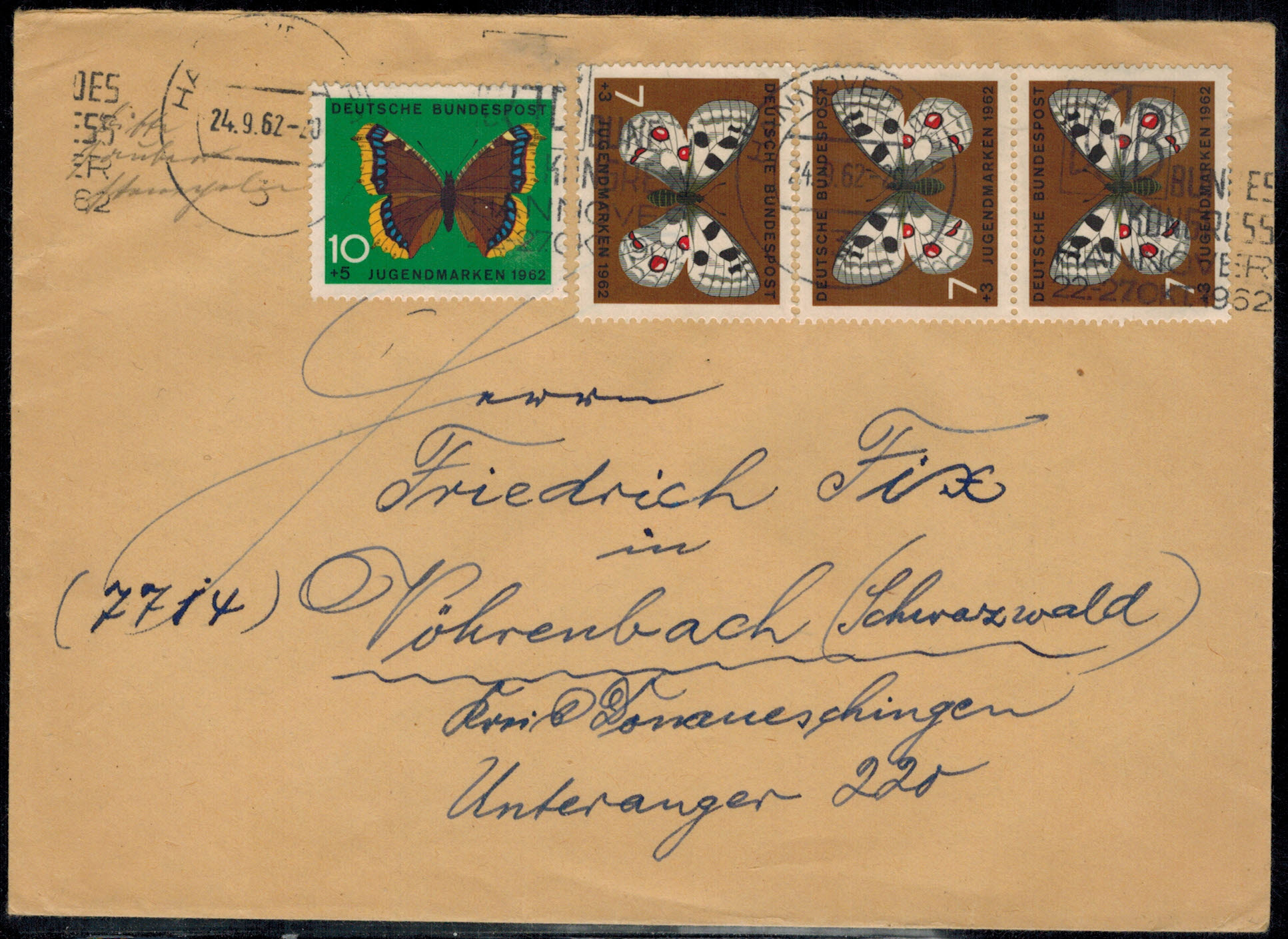 Bund 0376 + 377 als MiF auf Brief !
