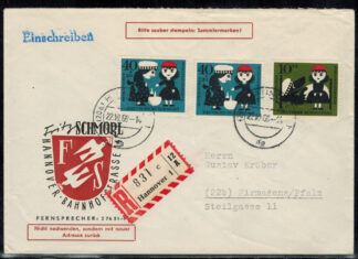 Bund 0376 – 379 mit Zusatzfrankatur 375 + 391 auf schönem Eilbotenbrief !