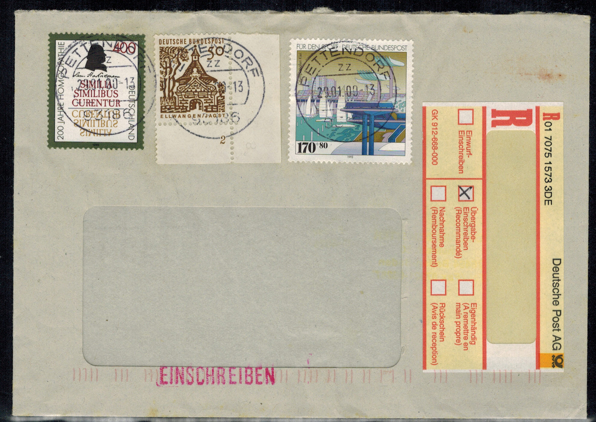 Bund 0458 ER r.u. mit FN 2 als MiF auf portogerechtem Einschreibenbrief !!