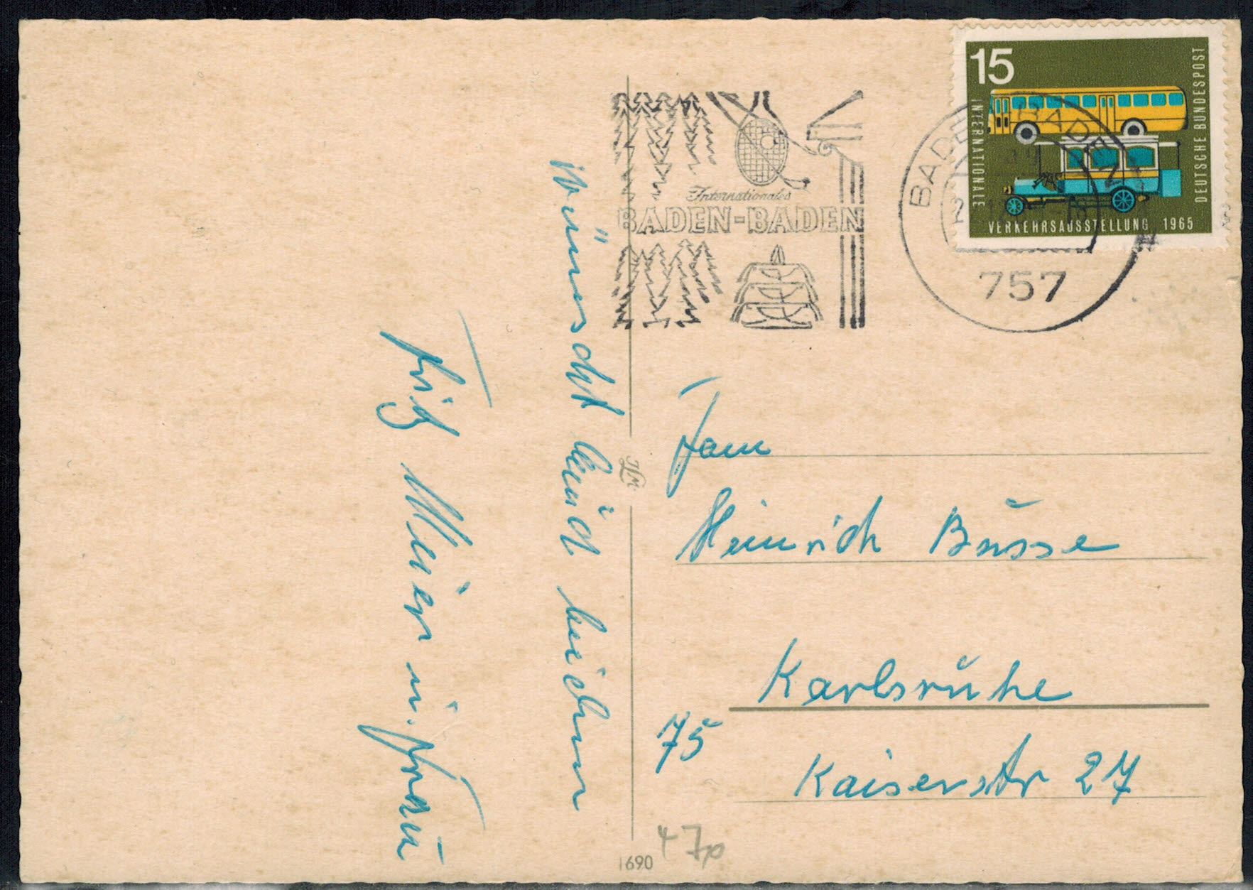 Bund 0280 als EF auf portogerechter Ansichtskarte von Karlsruhe
