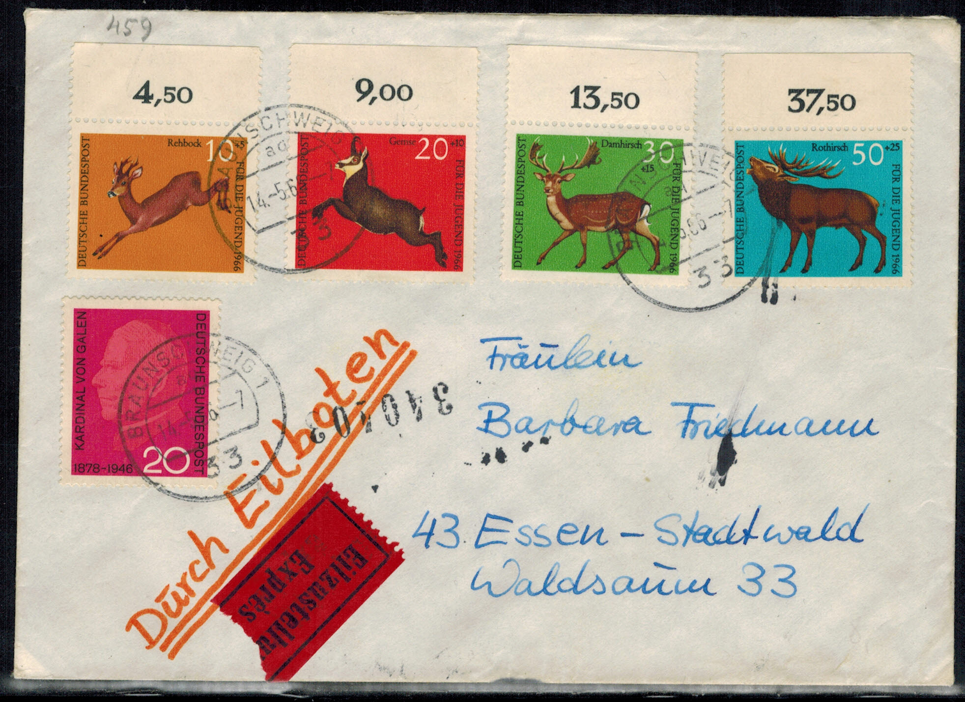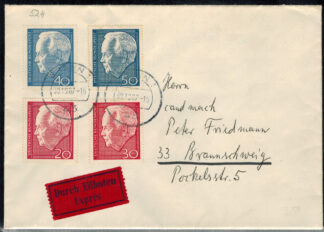 Bund 0511 – 514 mit Zusatzfrankatur 505 auf schönem Eilbotenbrief !