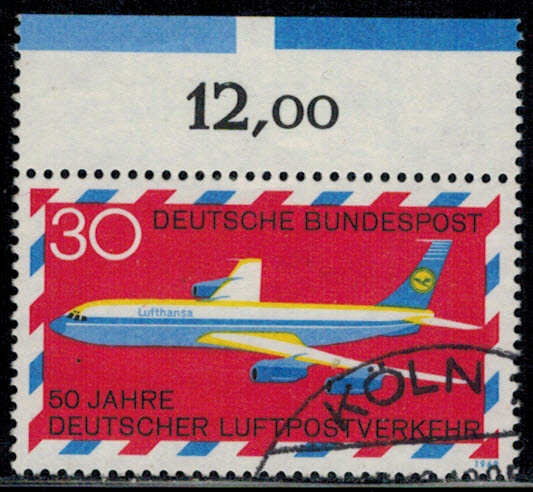 Bund 0577 Oberrandmarke mit Farbbalken gestempelt