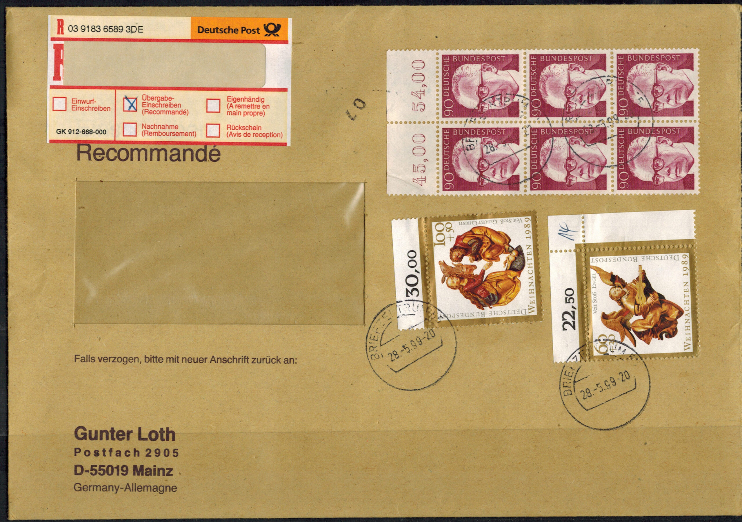 Bund 0643 OR-6-er Block + 1442 – 1443 auf portogerechtem Einwurf-Einschreibenbrief !