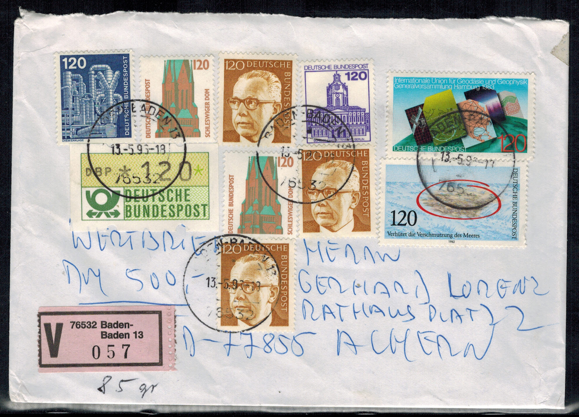 Bund 0691 10 Stück nur 120 Pf.-Werte als MiF auf portogerechtem Wertbrief !