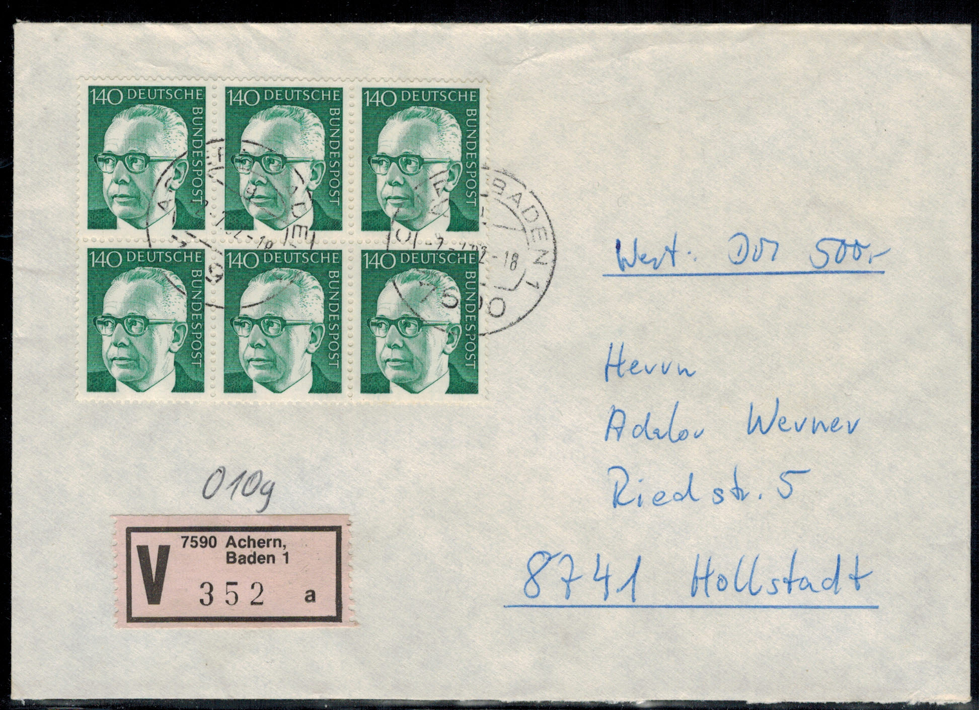 Bund 0729 6-er Block auf Wertbrief