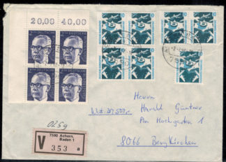 Bund 0645 ER-4-er Block l.o. + 1347 als 4-er Block, waagr. Paar + EZM auf Wertbrief