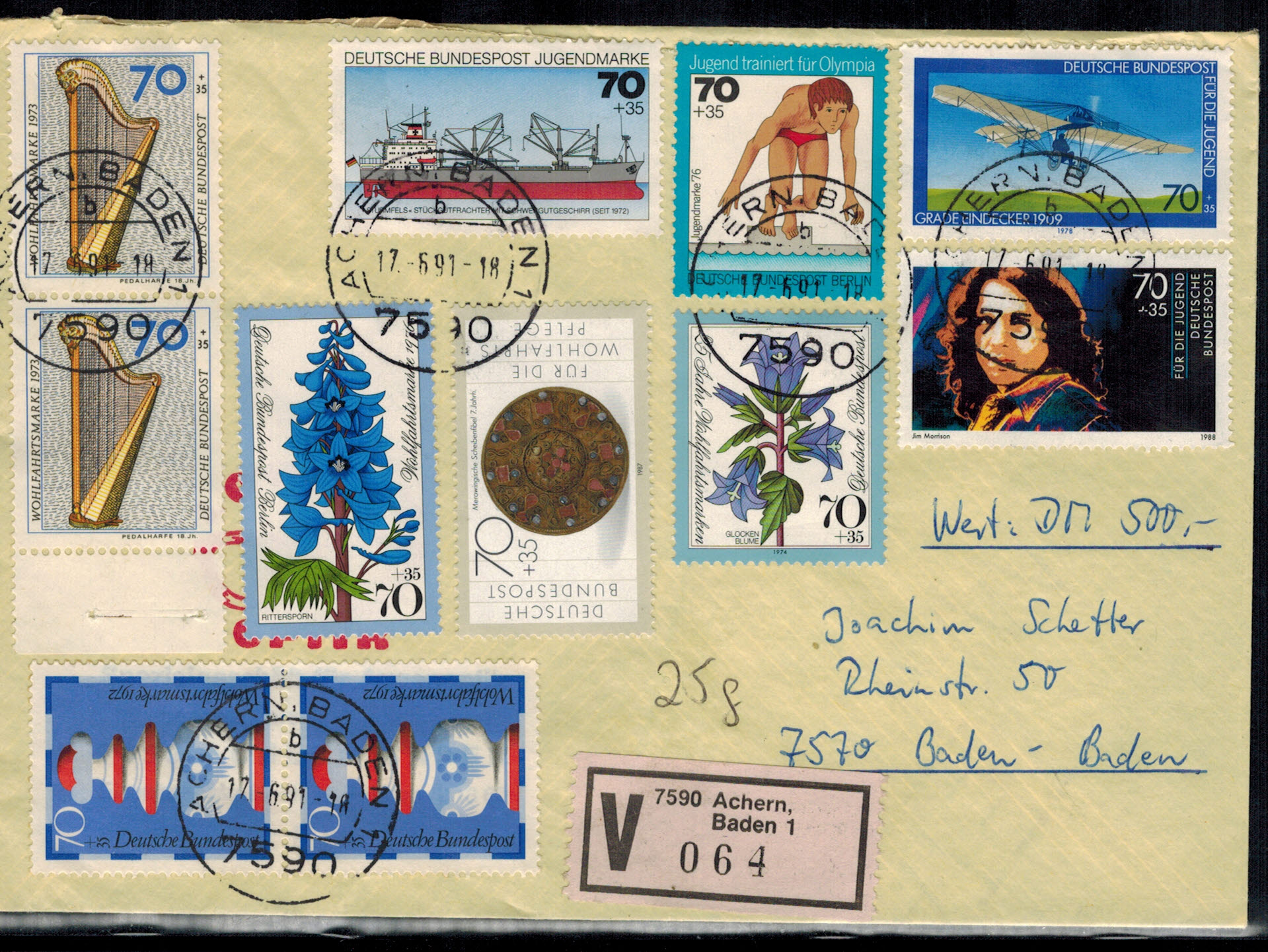 Bund 0745 senkr. Paar 11 Stück nur 70 Pf.-Werte als MiF auf portogerechtem Wertbrief !