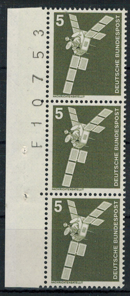Bund 18 Werte I+T senkr. 3-er Streifen l. mit 6-stelliger BZN nach innen