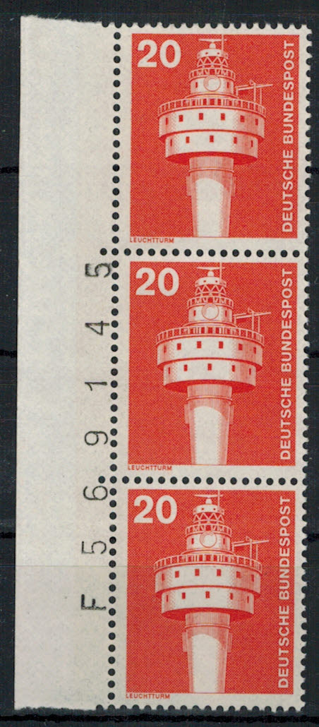 Bund 16 Werte I+T senkr. 2-er oder 3-er Streifen l. mit 5-stelliger BZN nach innen