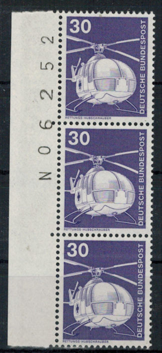 Bund 16 Werte I+T senkr. 2-er oder 3-er Streifen l. mit 5-stelliger BZN nach innen