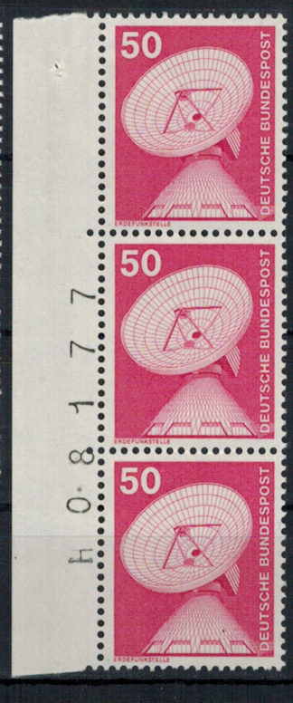 Bund 18 Werte I+T senkr. 3-er Streifen l. mit 6-stelliger BZN nach innen