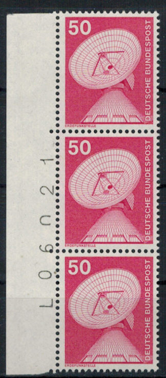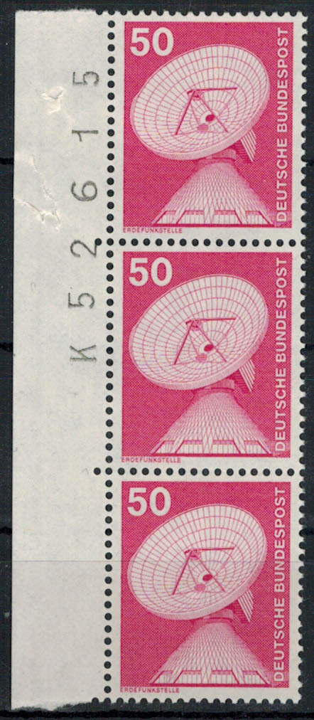 Bund 18 Werte I+T senkr. 3-er Streifen l. mit 6-stelliger BZN nach innen