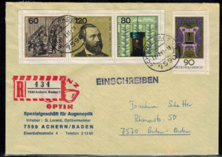 Bund 0867 – 870 kompletter ER-Satz r.u. mit Fn.1 bzw. Fn.2 als MiF auf portogerechtem Expressbrief !!