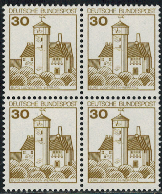 Bund 1143 ER-4-er Block l.o. mit Plattenzeichen „Strich“