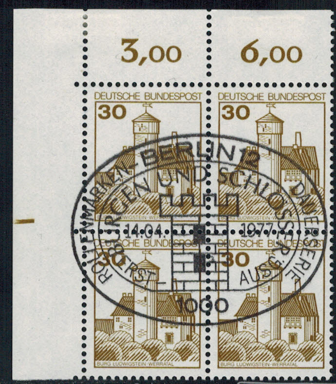 Bund 0914 ER-4-er Block l.o. mit Plattenzeichen „Strich“ ESST !