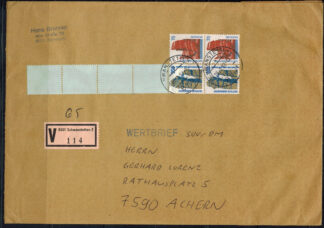 Bund 1623 RE 1 + 4 und 1469 als 5-er Streifen mit Zählnummer auf portogerechtem Wertbrief !!