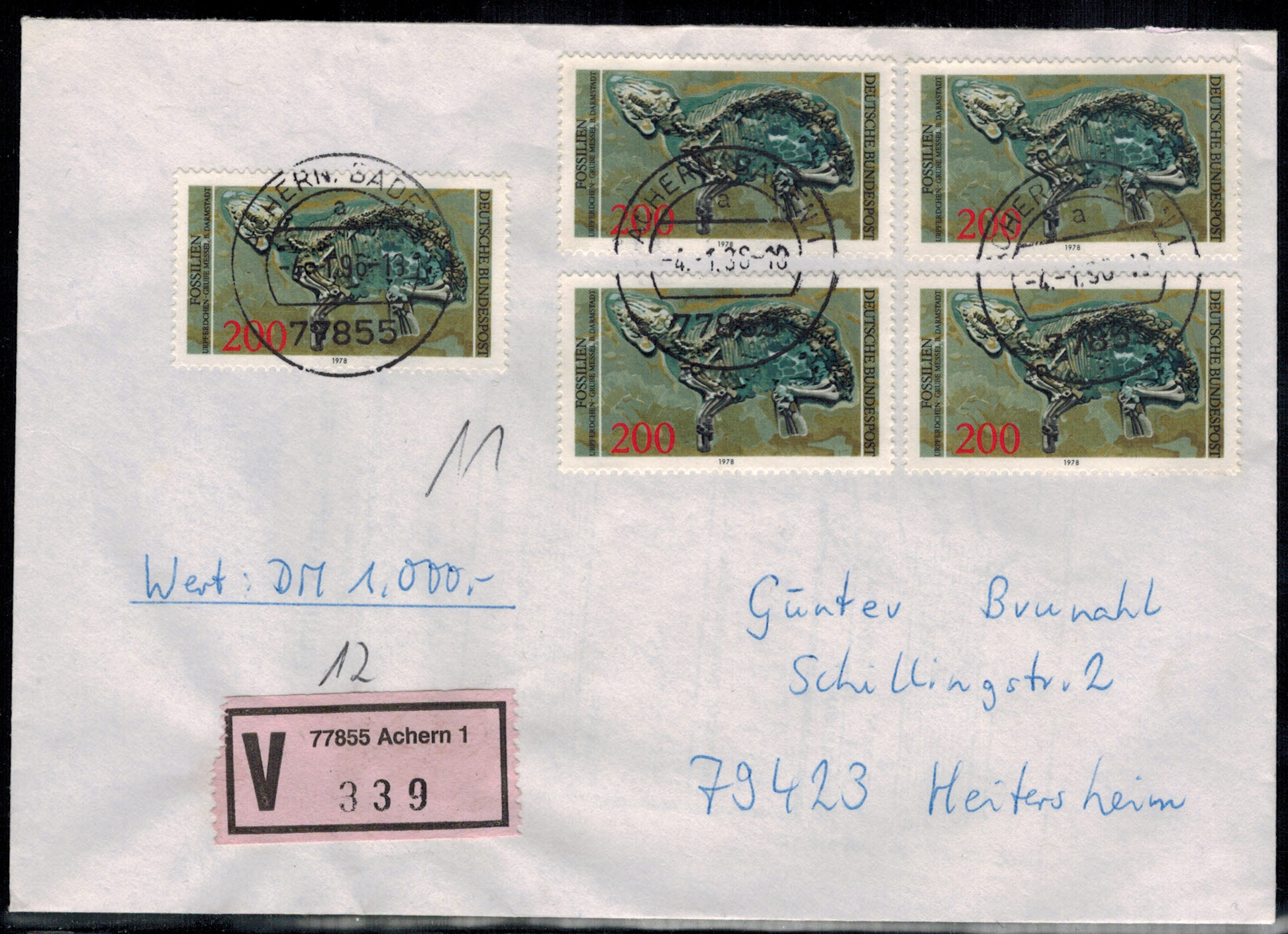 Bund 0975 5 Werte als MeF auf portogerechtem Wertbrief