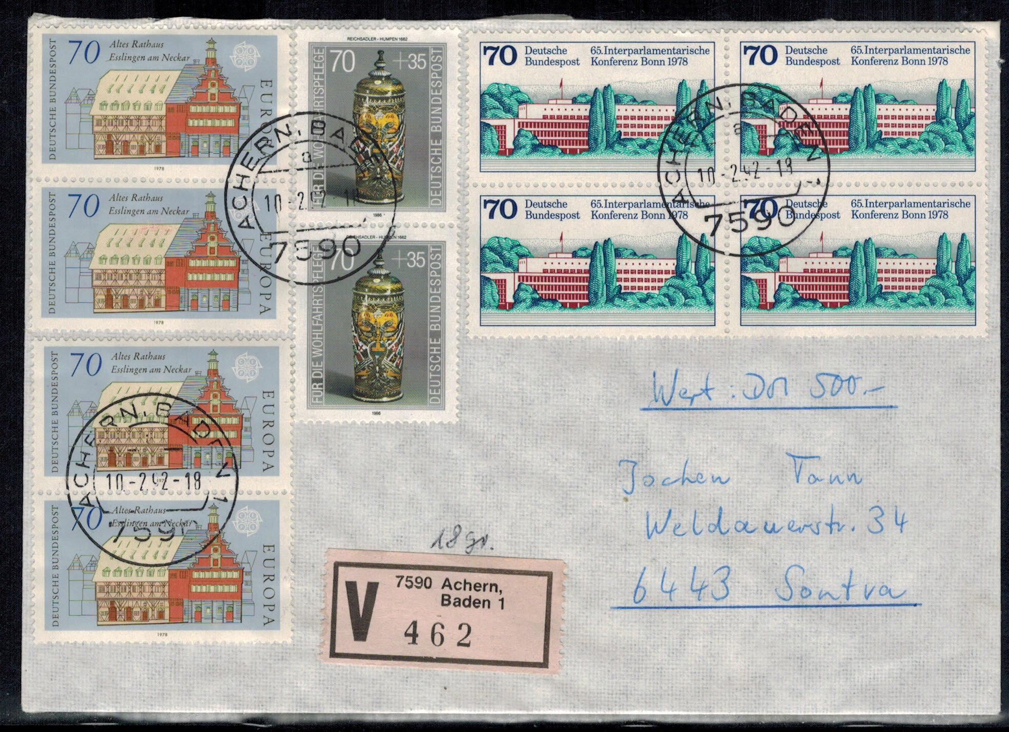 Bund 0976 4-er Block 10 Stück nur 70 Pf.-Werte als MiF auf portogerechtem Wertbrief !