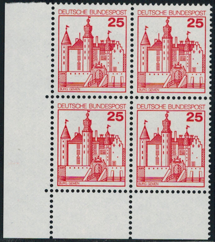 Bund 1143 ER-4-er Block l.o. mit Plattenzeichen „Strich“